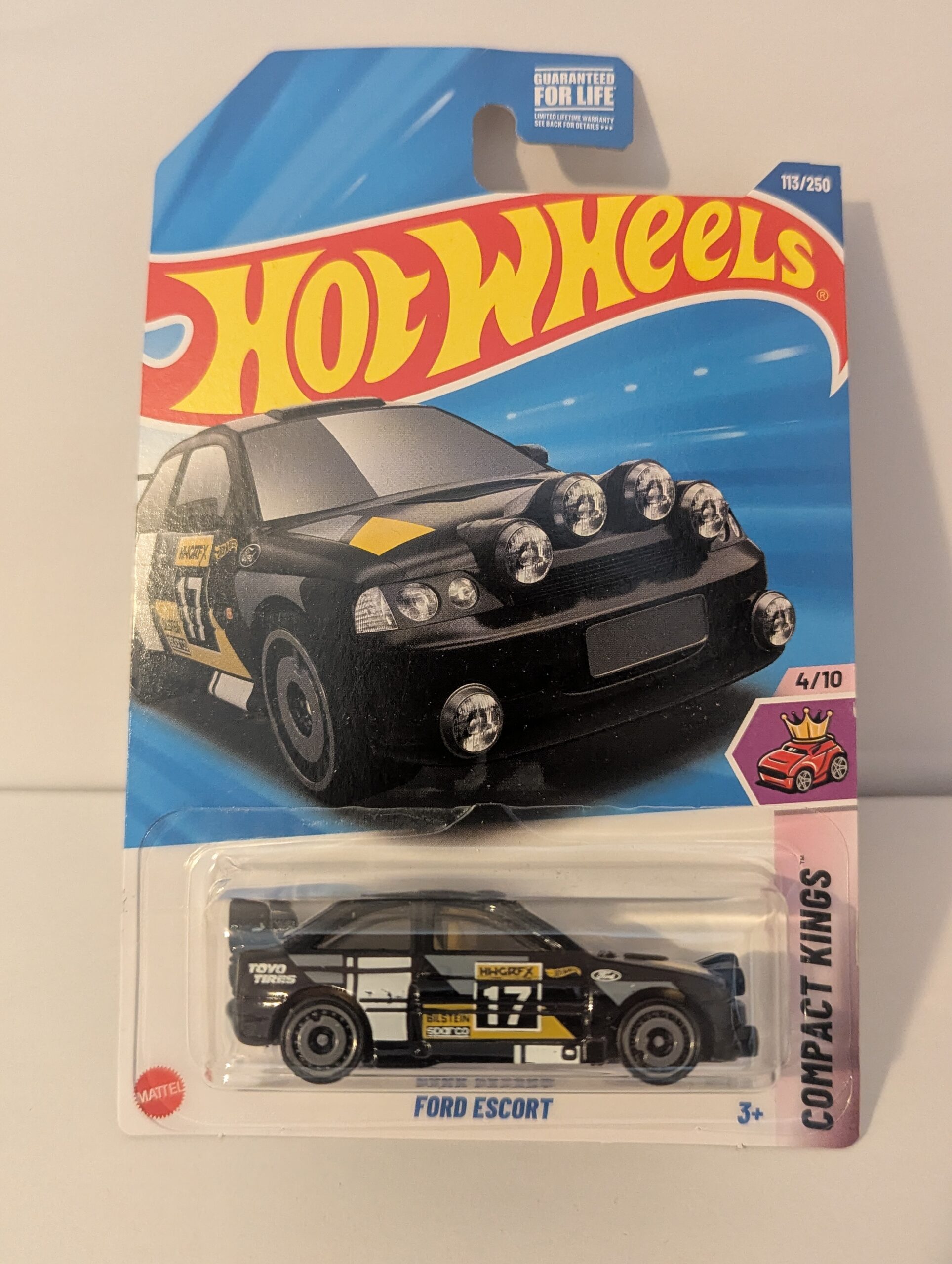 This brand new and unopened Hot Wheels Ford Escort in Black is Car 113/250 from the Hot Wheels Mainline 2025 F Case release.